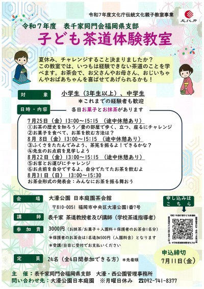 夏休みの楽しい思い出の一つに・・・「茶道」体験してみませんか。
