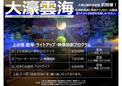 (上の池 雲海・ライトアップ・映像投影プログラムの内容を追加掲載いたしました)