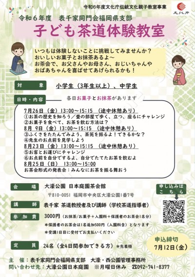 夏休みの楽しい思い出の一つに・・・「茶道」体験してみませんか。