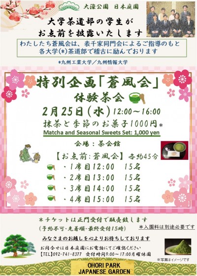 2月25日(水)に大学茶道部による茶会体験を開催いたします